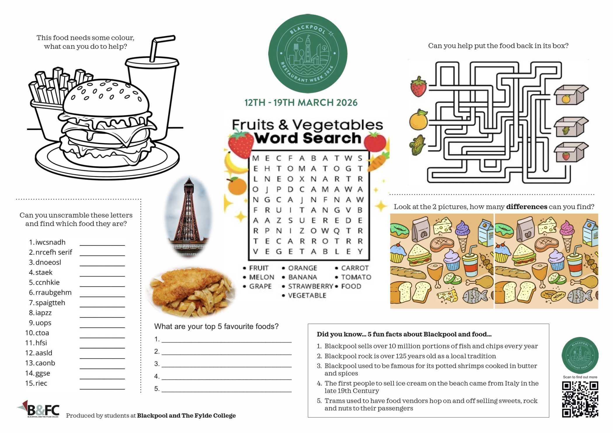 As part of Blackpool Restaurant Week 2026, the team at Blackpool BID have created a free Kids’ Activity Sheet to help venues offer something fun and engaging for younger diners during the week.